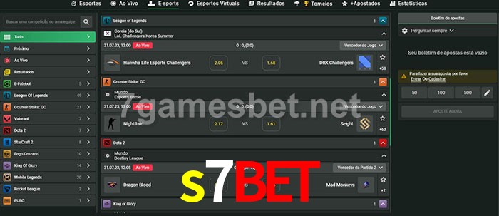 O s7bet oferece uma grande seleção de opções de apostas em e-sports com probabilidades competitivas